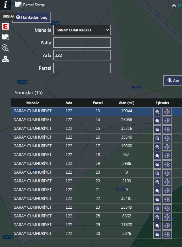 Ada-parsel sorgulaması yapabilir, imar durum belgesi ve plan notuna erişebilirsiniz.